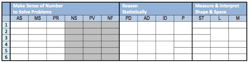 Map your whole course in terms of the numeracy requirements. Think of the big picture here. Remember: The three knowledge progressions on the right of the Number strand (shaded) are always one step below the highest step from the strategies progressions on the left.